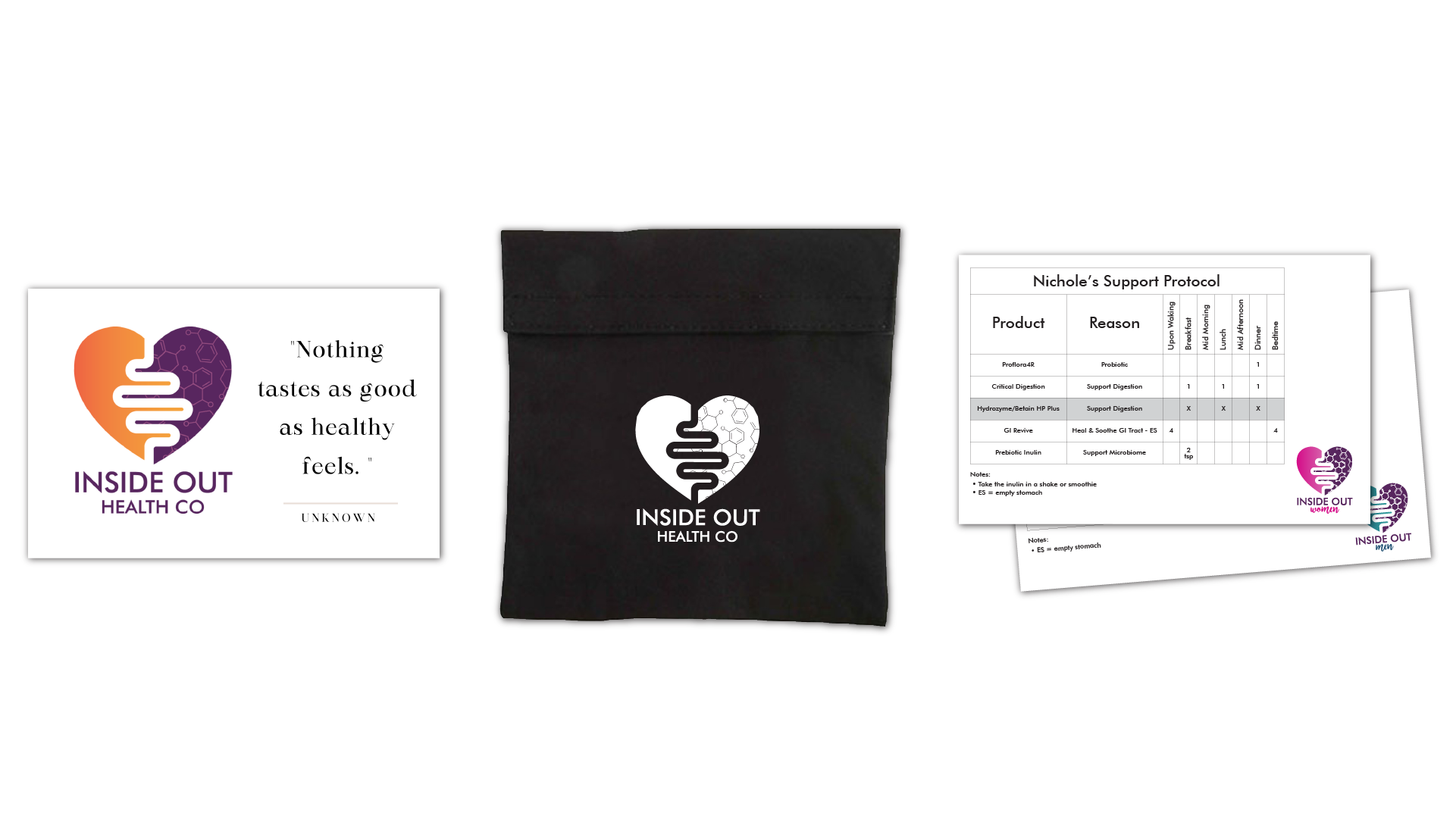 The result is a refreshed brand identity that feels natural, empowering, and connected—aligning with Inside Out Health Co’s mission to combine scientific insight with holistic practices, helping clients heal from the inside out, starting with the gut, and thrive in every aspect of life.